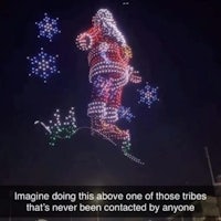 This one really asks: what if first contact wasn’t aliens, but Santa formed by drone lights descending from the sky?