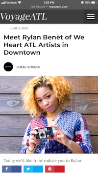 VoyageATL highlighted Rylan as the creator of We Heart ATL Artists, a weekly newsletter and Facebook group. The article also touches on her photography.